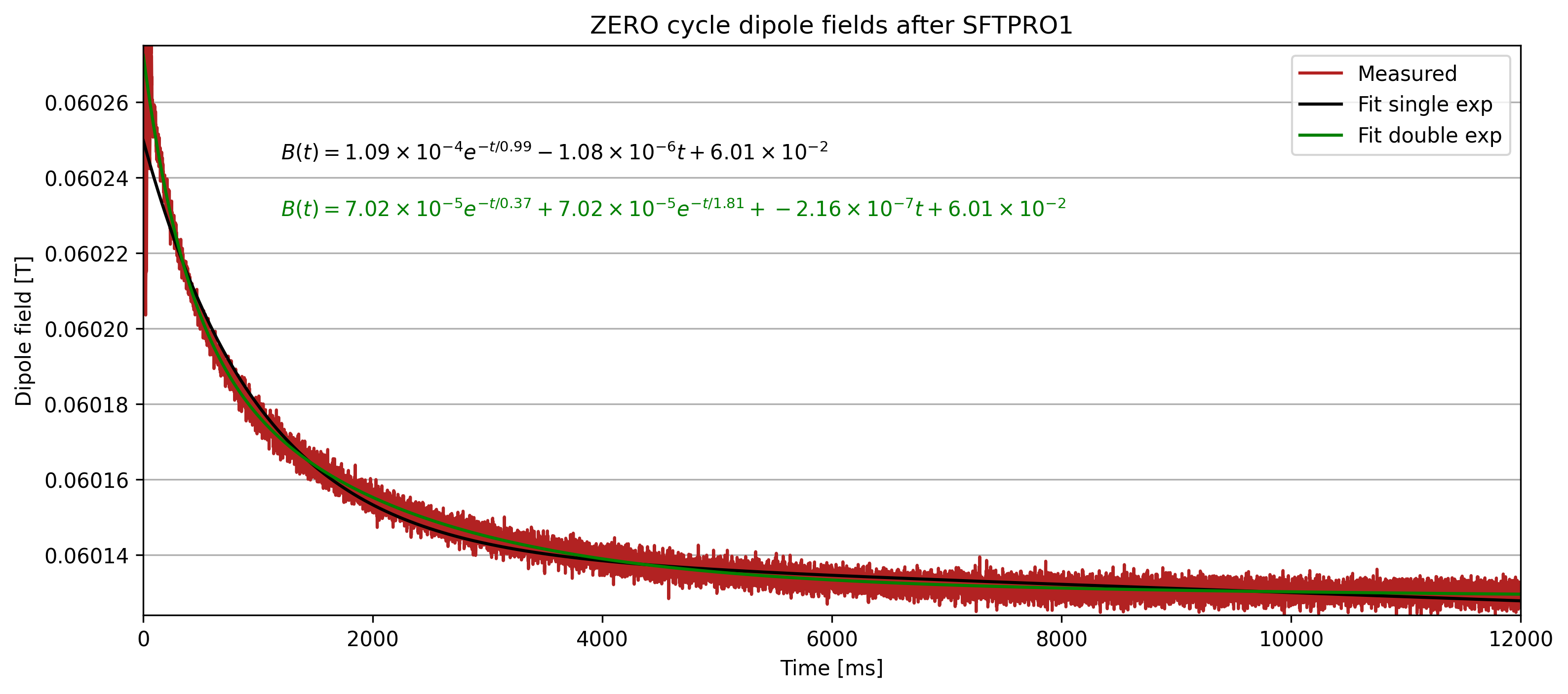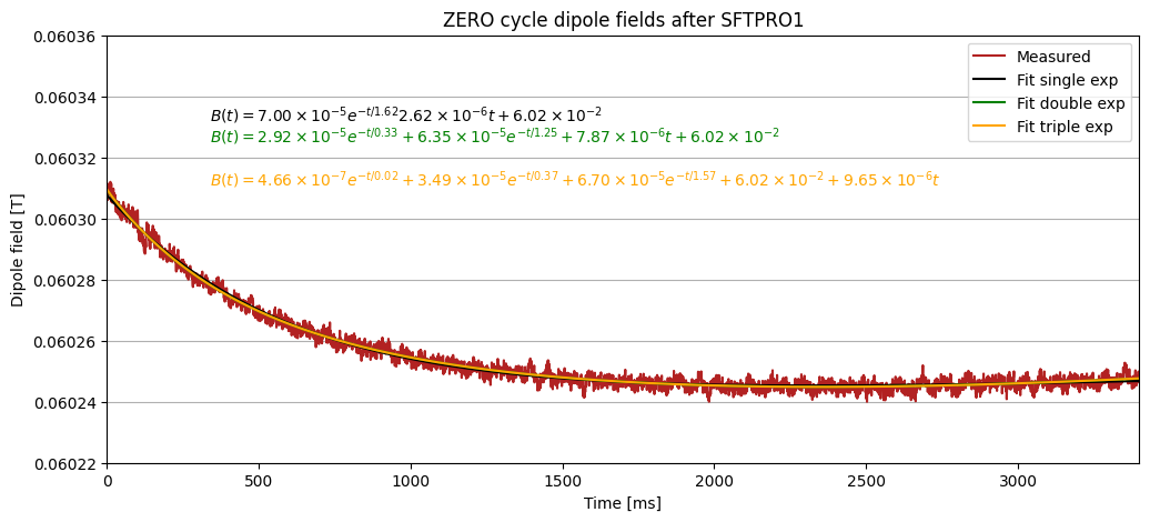 We use a dataset with 3x ZEROs after SFTPRO1 ramp down, and to compensate for drift in the acqusition of the ZERO cycles, we add an additional linear component to the curve fit and achieve the following: