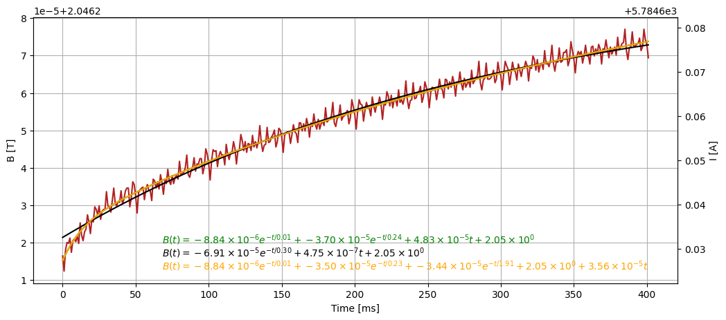 We see that the fit improves to the previously fitted decay constant. Here we instead see a decay constant of , however this still differs greatly from effects seen on the beam during Eddy current decay constant.