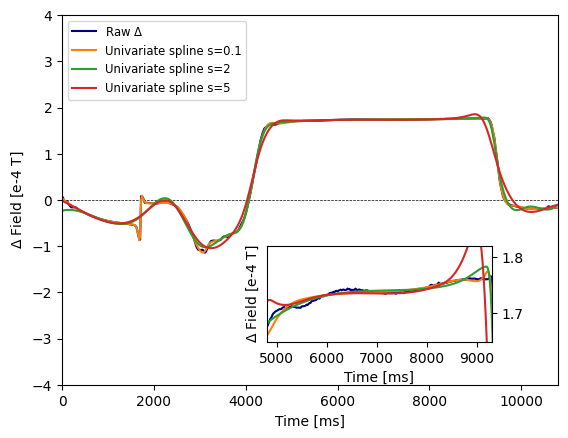 An issue with the field predictions from the TFT when calculating the to trim as and , is that the field predictions are not perfectly smooth. For the MBIs, the field is predicted at 50 Hz, but pointwise differences are common, and results in a noisy that is sent to LSA.