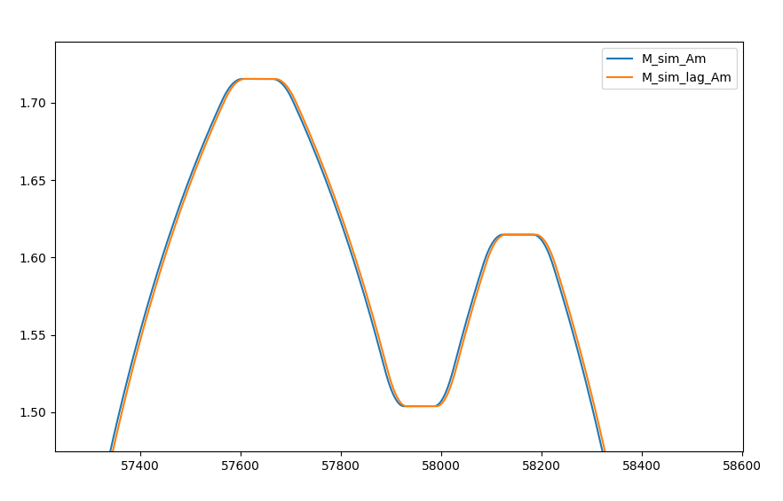 A lag of 3 ms is added to the M_sim_A_m data in the M_sim_lag_A_m column, with zero-padding in the first 5 samples (at 1 kHz).