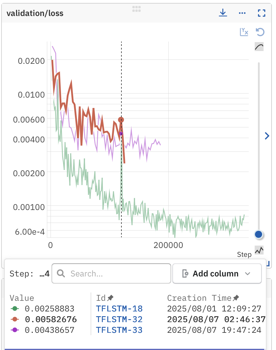 We see a much poorer training loss evolution thanks to packing RNN sequences, but the validation loss is not as much affected. This is likely due to the model not learning the padded values, which could be much of the decoder input tensor with the large randomize_seq_len bounds (180 to 1020 real sample length).