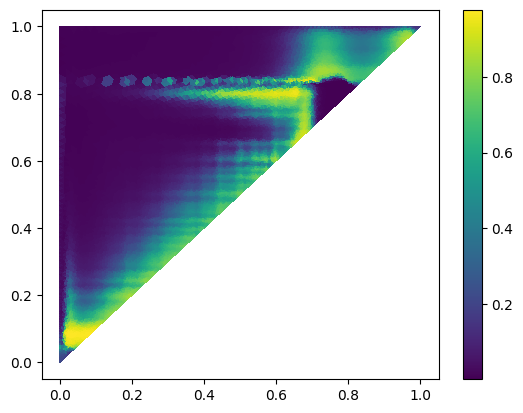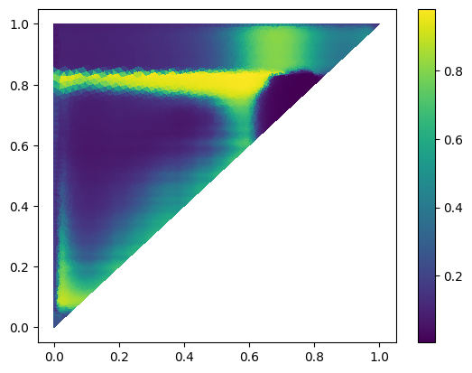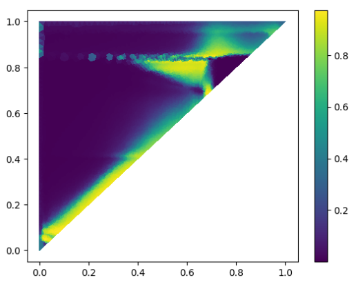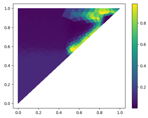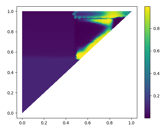 We restrict the domain to instead of . This results in the the diagrams below, where only 1/4 of the triangle gets painted.