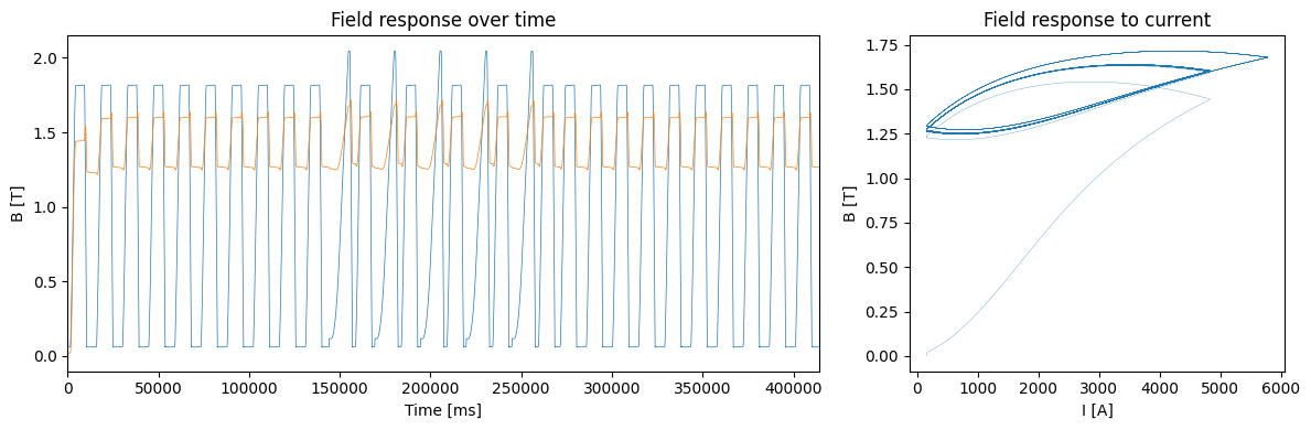 )However the hysteretic response leaves a very high remanent field, which is not so representative for the accelerator magnets, where the field mainly follow the anhysteretic magnetization curve.