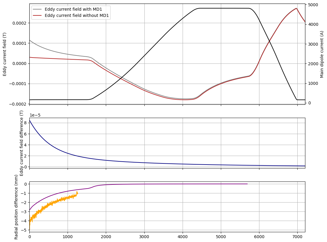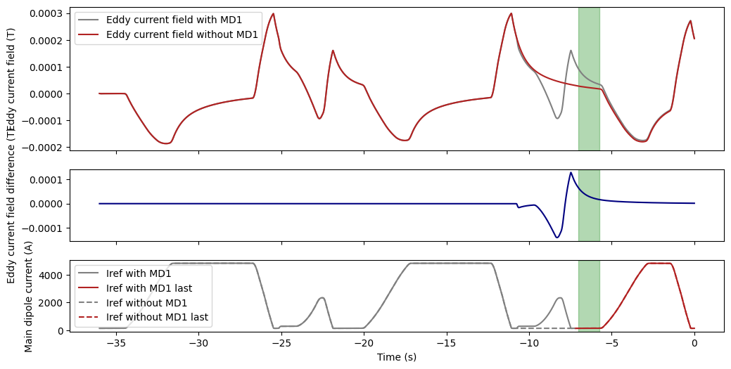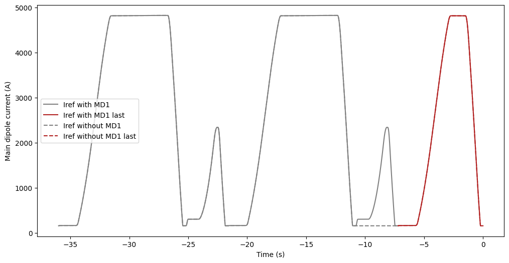 We see that the only difference between the two sequences is the main dipole cycle on the MD1.