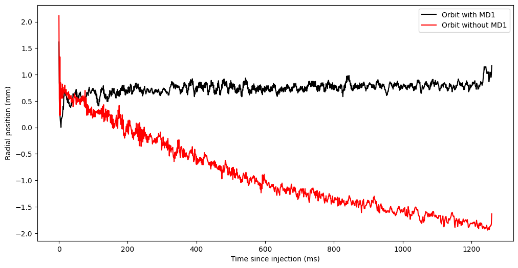 Translating to looking at the relative orbit between the two orbit acquisitions (since there was a momentum ramp in both acquisitions, so we don’t see the decaying effects on the orbit directly):