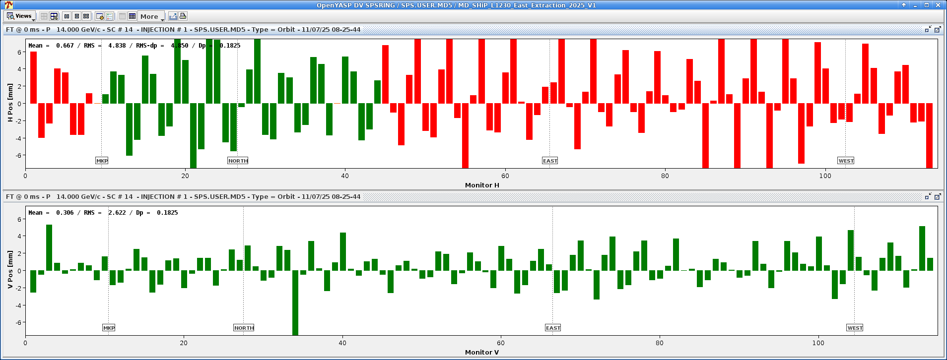 Since there is a momentum ramp at the SHIP injection just as for the SFTPRO, we see a decrease in orbit after injection, according to the momentum ramp.