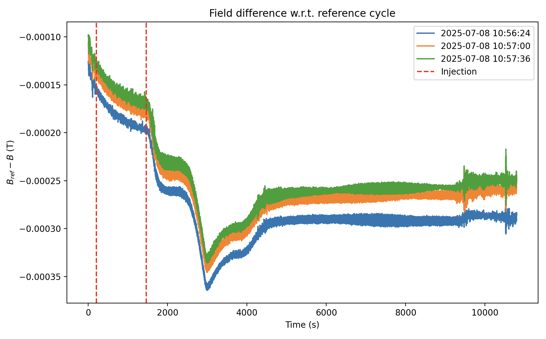 This would suggest that at first turn the field changes by +1.5 G on each the measurements after the reference was taken (SFTPRO1 with MD1).