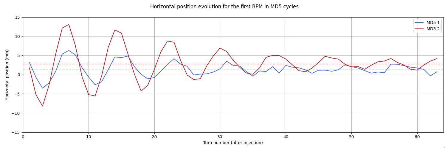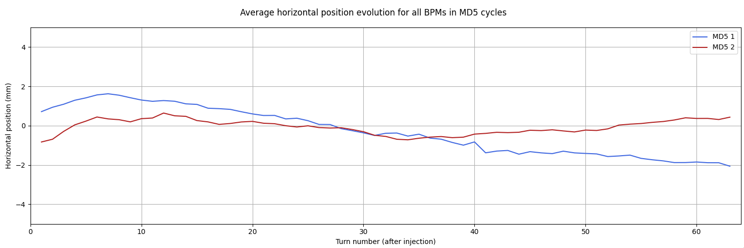 We extract orbit data from NXCALS BPMs during MD 2024-11-29, and compute the average beam position for the first turn around the ring.