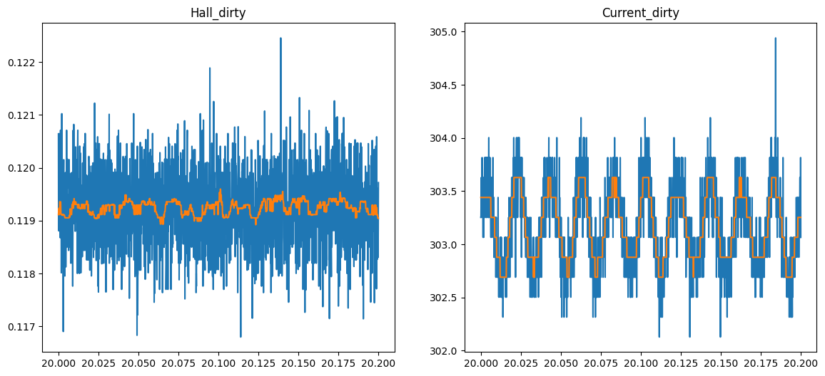 The time series show that a median filter kernel size of more than 51 risk oversmoothing the 50 hz ripples. We also note that the measurement accuracy of the current is limited to , equivalent to about field response. Notice also how the denoised signal yields only about accuracy peak to peak