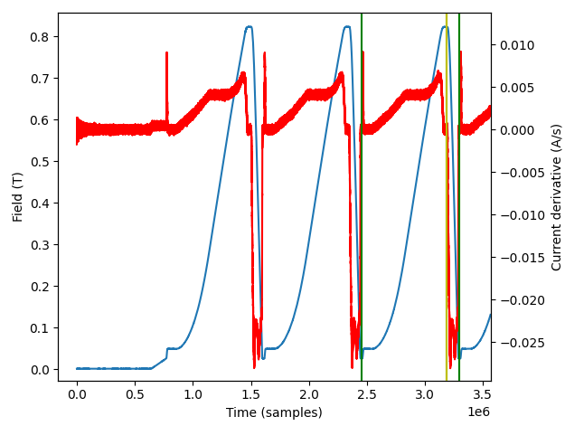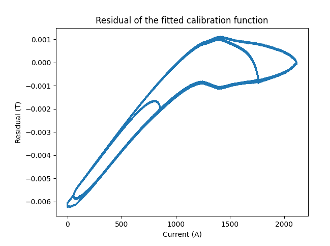 We fit a calibration function by taking the average between ramp up and ramp down fields (extremes of hysteresis loops) of the LHCPILOT after the second pilot.